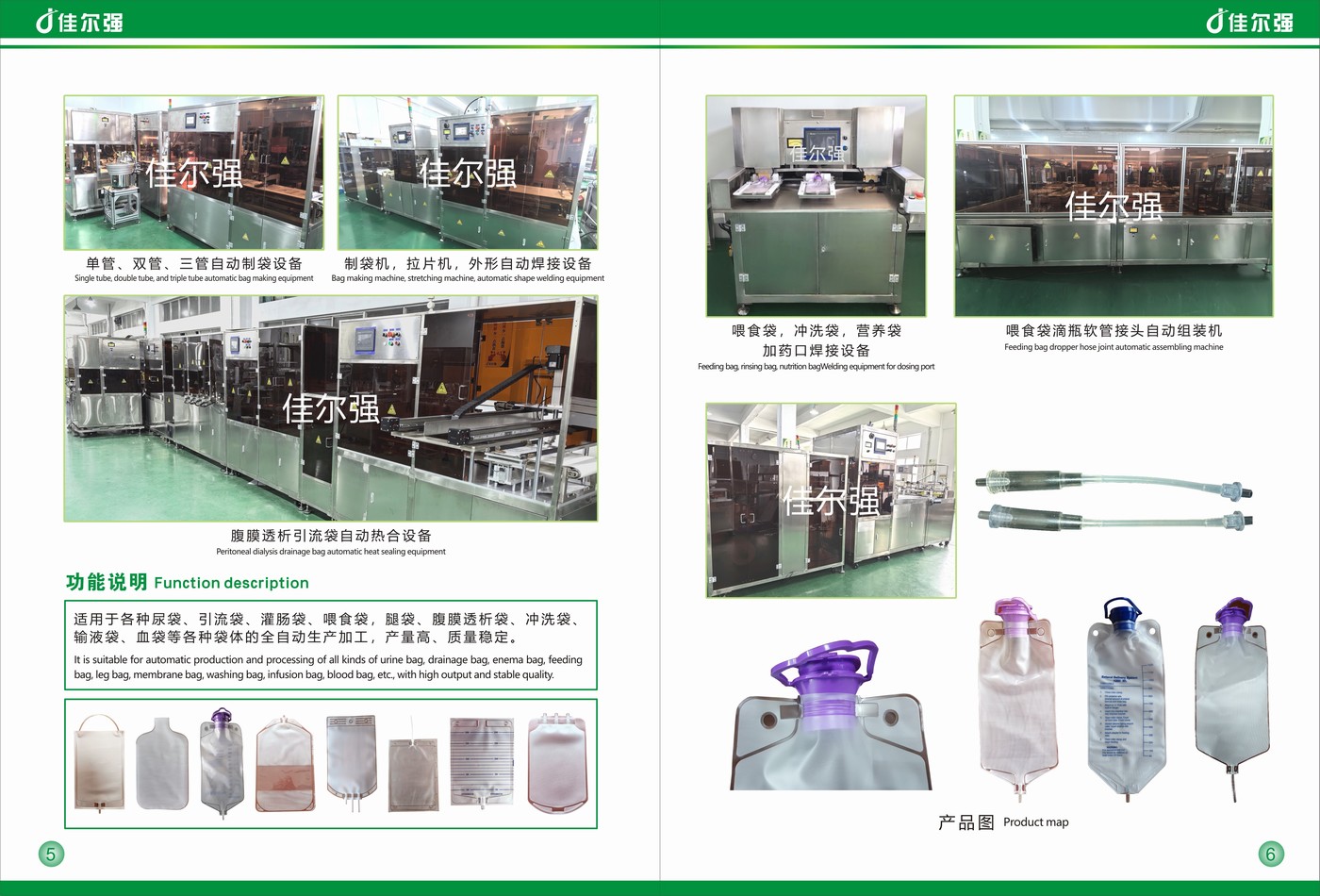 蘇州佳爾強公司主要從事醫療器械行業: 尿袋、引流袋、沖洗袋,腿袋,喂食袋、腹膜透析袋,營養袋,喂食袋,血袋,輸液袋等各種醫療液袋類自動高頻高周波焊接熱合設備, 醫療液袋氣密性檢測,測漏設備,氣檢設備。 吸痰管、導尿管、引流管,胃管,氣管插管,等各種管類的熱打孔設備,燙頭,熔頭成型設備,閉口,封口,開口等成型,設備通用型強,換型方便。 致力于對高頻高周波熱合制造深度開發, 通過不斷創新,融合國內外先進的自動化技術,使高頻制造自動化更好的發揮其優勢,更好的為客戶服務。